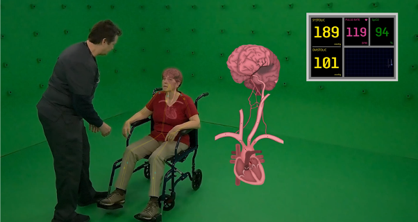 Several of the projects also intersected—Shonu, Katragadda, Hontz, and Khera worked on creating an immersive VR training model of a doctor talking to a wheelchair-bound stroke patient based on footage taken in the Holocamera Studio at the University of Maryland, College Park. The interns gained clinical expertise for the project from collaborator Cheri Hendrix, assistant dean of physician assistant education at the University of Maryland, Baltimore.