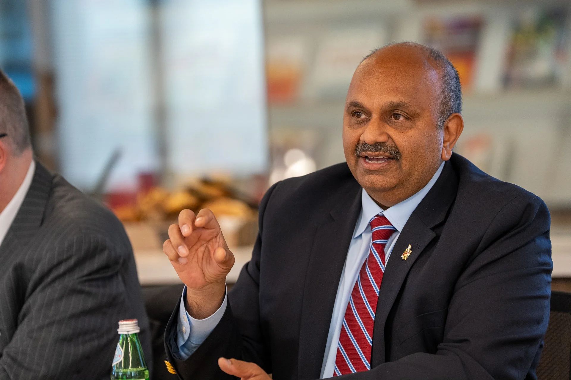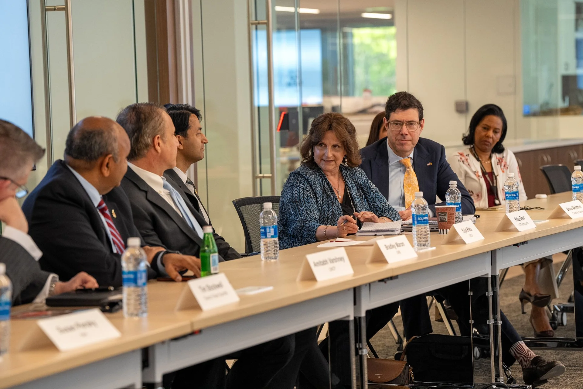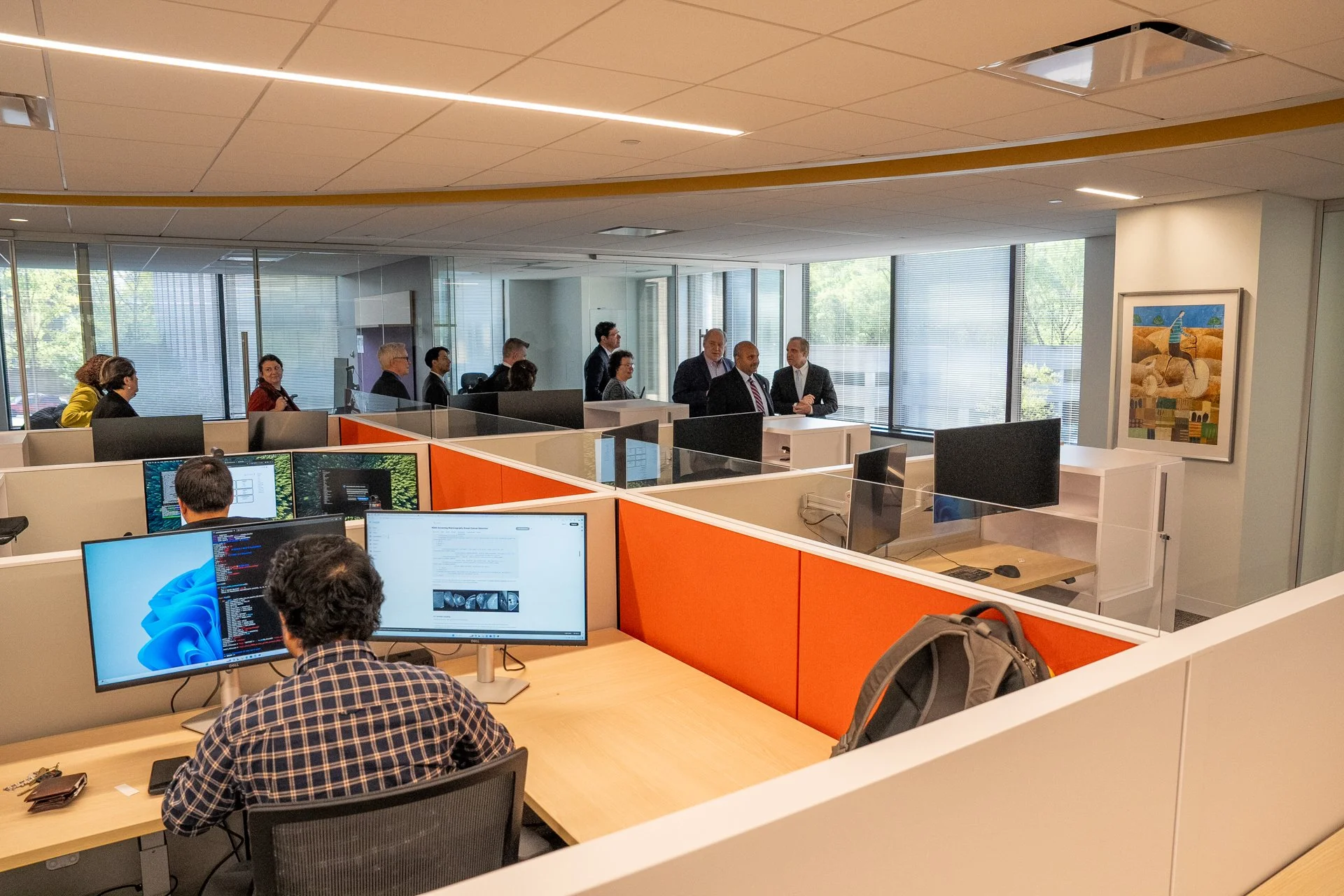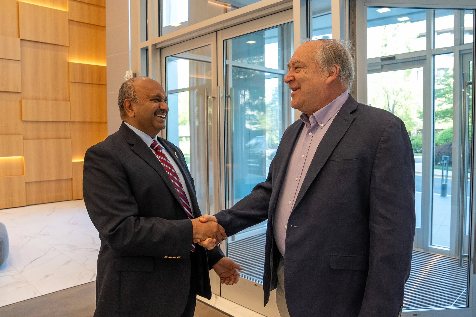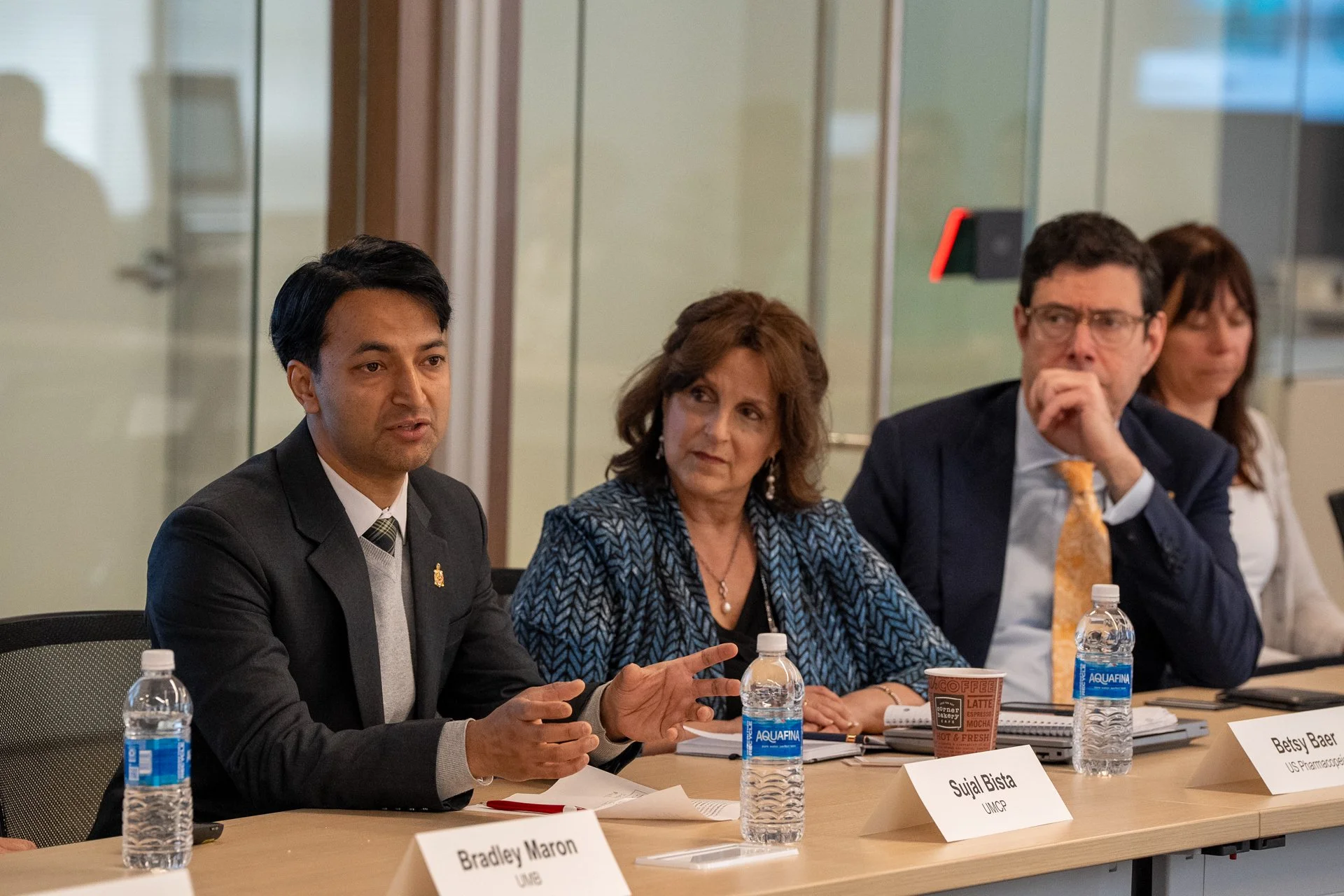 The University of Maryland Institute for Health Computing (UM-IHC) hosted Montgomery County Executive Marc Elrich on Tuesday, April 23, 2024, in its new North Bethesda offices. Elrich and his team were joined by representatives from federal agency National Institutes of Health (NIH) and companies Kaiser Permanente, US Pharmacopeia and ThermoFisher.