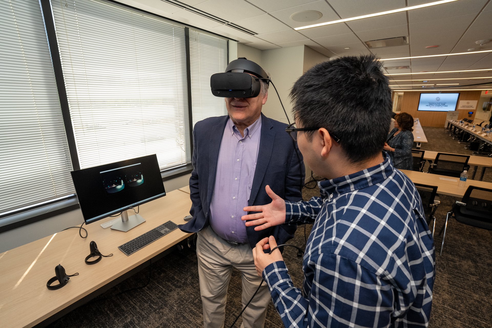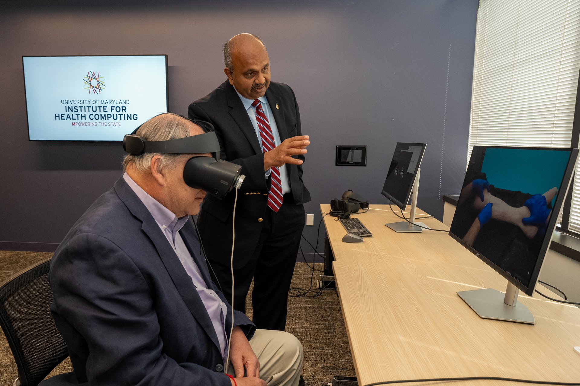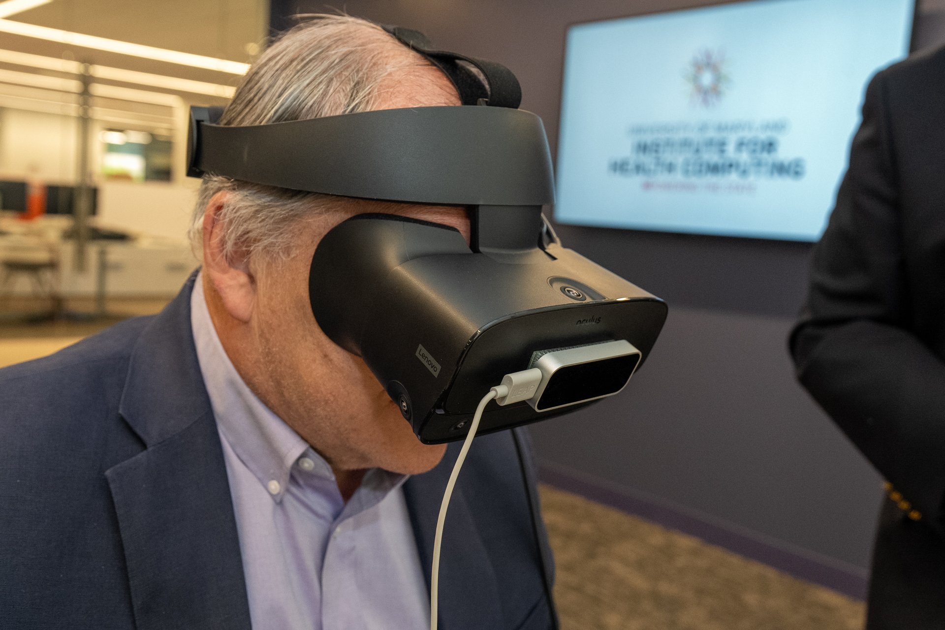Highlights of the tour included virtual reality demos for the Montgomery County team and meet and greets with Elrich and students, IHC faculty, staff, and both NIH and Kaiser Permanente, US Pharmacopeia, and ThermoFisher company.
