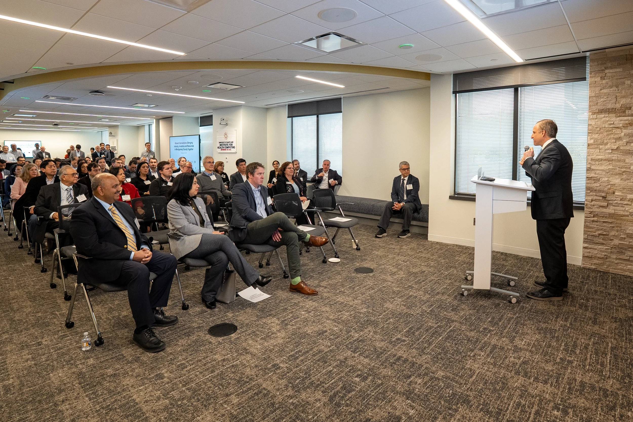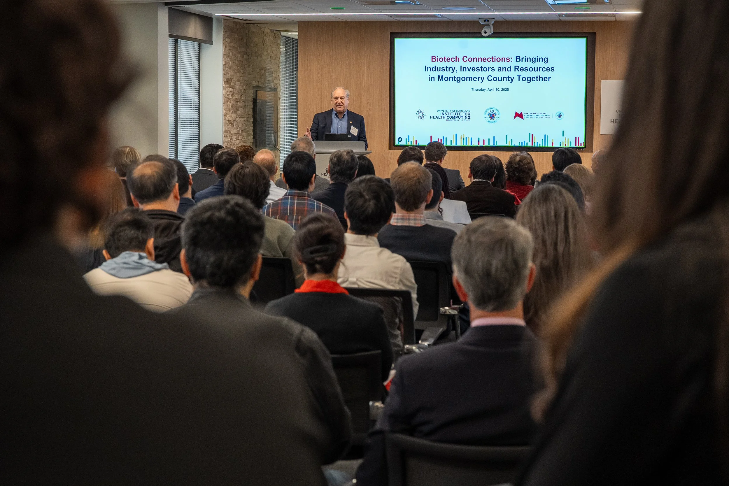 The University of Maryland Institute for Health Computing (UM-IHC) and Montgomery County Economic Development Corporation hosted the inaugural “Biotech Connections: Bringing Together Industry, Investors and Resources in Montgomery County” event on April 10, 2025. The event held at the UM-IHC offices in North Bethesda brought together early-stage life sciences companies with resource partners, potential investors, and other state and local organizations committed to fostering growth in Montgomery County.